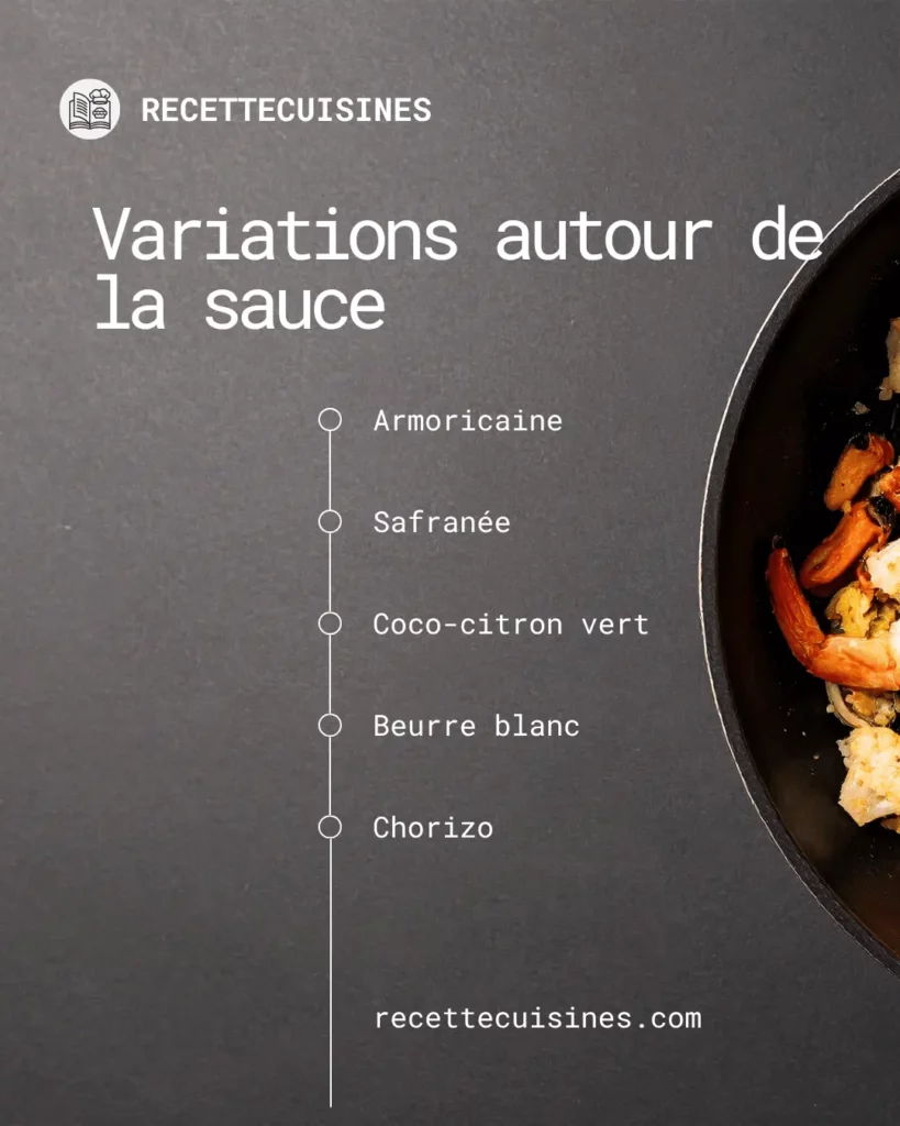 - Armoricaine : tomate, cognac, bisque de crustacés – iodée et puissante.